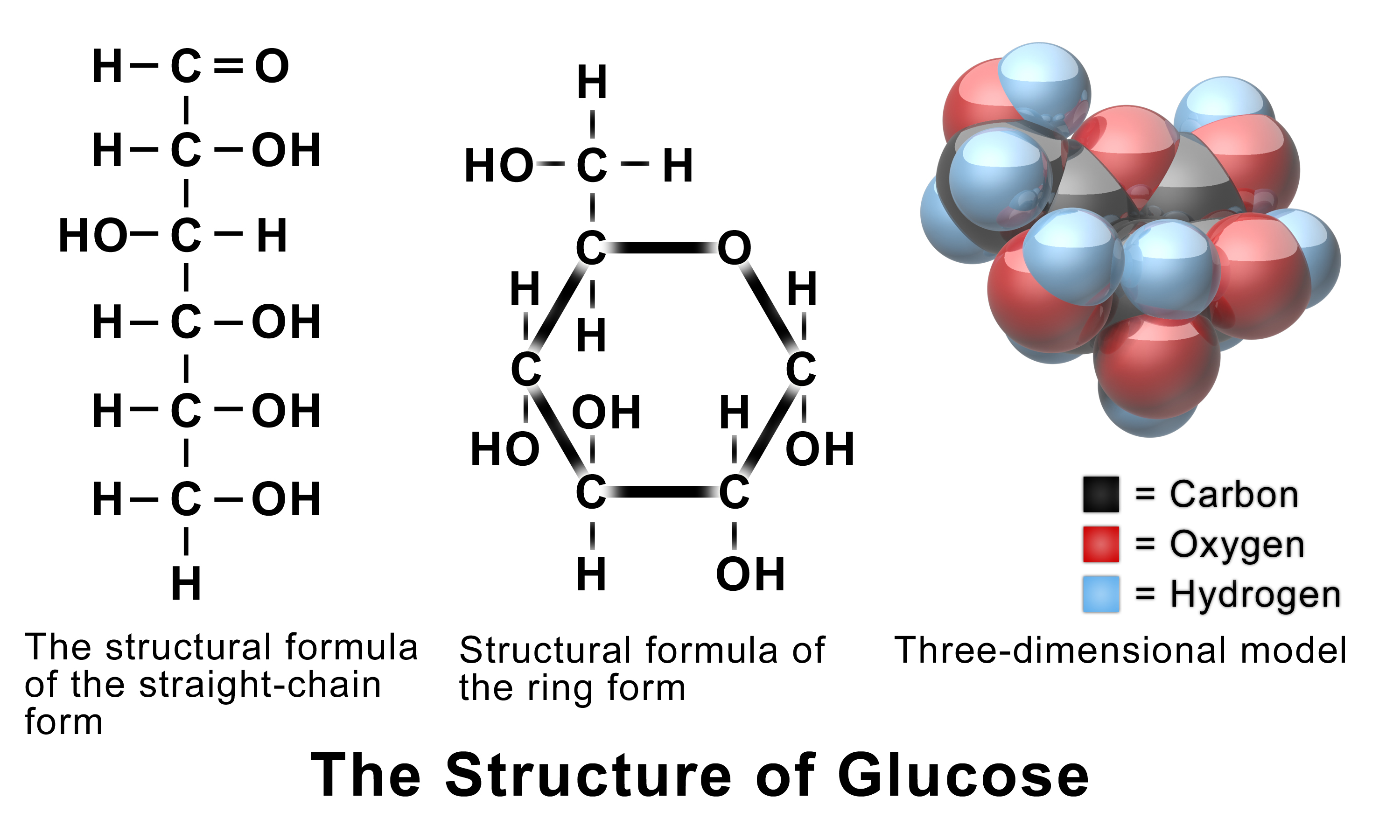 En la imagen se ve una molécula de azúcar con sus átomos organizados. Todas las moléculas orgánicas están compuestas por átomos de carbono. Los enlaces químicos fundamentales se realizan entre átomos de carbono o entre estos y átomos de hidrógeno, formando una estructura base hidrocarbonatada.