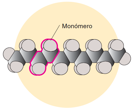 Las biomoléculas (excepto los lípidos) son polímeros; esto quiere decir que son moléculas grandes y complejas que se forman por muchos componentes básicos similares llamados monómeros. El monómero es una molécula pequeña y básica, que forma cadenas lineares o ramificadas de un polímero. En la imagen se observa un esquema simplificado.