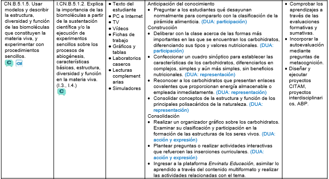 CN.B.5.1.5. Usar modelos y describir la estructura, diversidad y función de las biomoléculas que constituyen la materia viva, y experimentar con procedimientos sencillos.