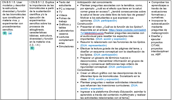 CN.B.5.1.5. Usar modelos y describir la estructura, diversidad y función de las biomoléculas que constituyen la materia viva, y experimentar con procedimientos sencillos.