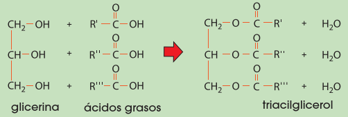 los triglicéridos, con tres moléculas de ácidos grasos.