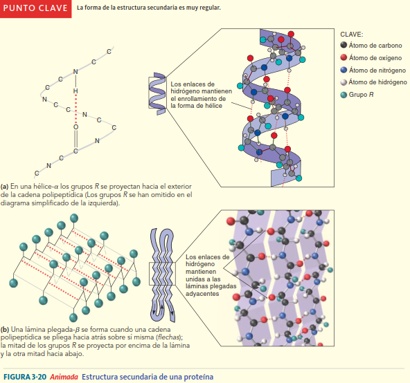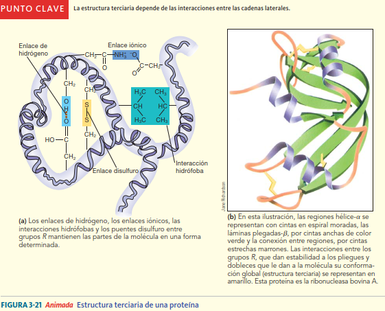 Una proteína puede tener hasta cuatro niveles de estructura, cada una construida sobre la anterior. La estructura está determinada por la disposición espacial y la configuración de la cadena de aminoácidos.