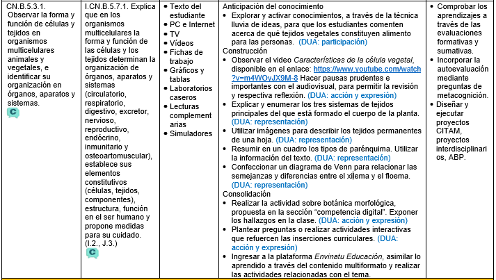 CN.B.5.3.1. Observar la forma y función de células y tejidos en organismos multicelulares animales y vegetales, e identificar su organización en órganos, aparatos y sistemas.