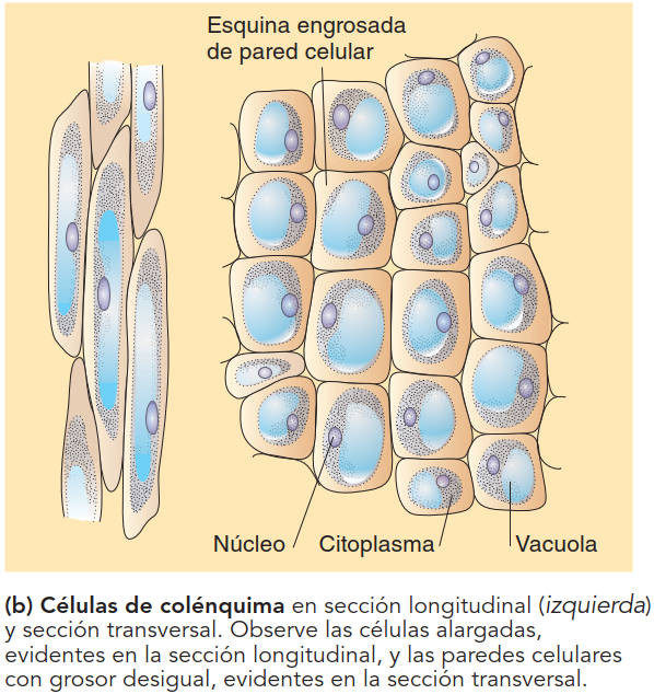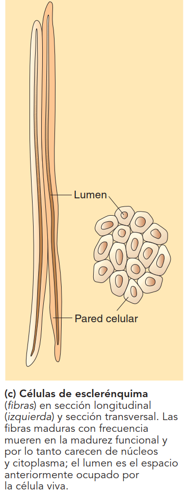 Los otros dos tejidos del sistema fundamental tienen una función común: constituyen un sostén a manera de esqueleto de la planta, para ello sus células poseen paredes gruesas y lignificadas. Proveen a la planta firmeza, forma determinada y fibra, la mantienen erguida, a la vez que le otorgan gran elasticidad. Estos tejidos son: