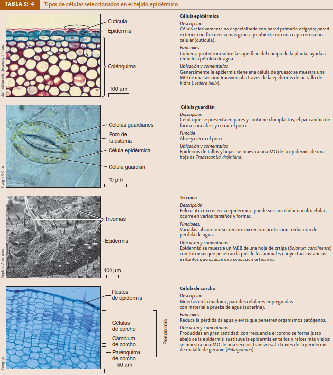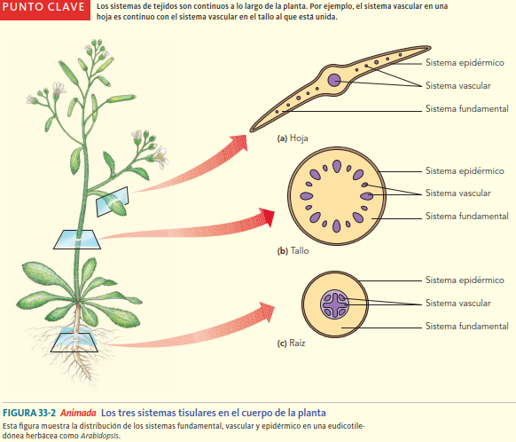 El cuerpo de la planta está formada por tres sistemas de tejidos: