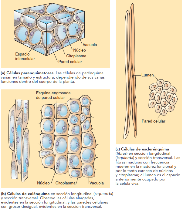 Es el que constituye la mayor parte de la planta. Se forma por tres tejidos, uno de almacenamiento y dos de sostén de la planta.