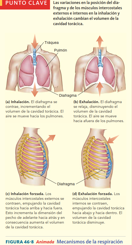los movimientos de la caja torácica, debidos a las contracciones de los músculos que en ella se insertan, hacen posible los movimientos de los pulmones, con el fin de agrandarlos o reducirlos de volumen.