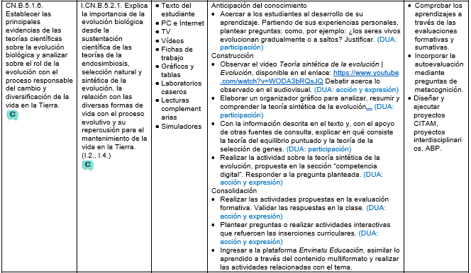 CN.B.5.1.6. Establecer las principales evidencias de las teorías científicas sobre la evolución biológica y analizar el rol de la evolución con el proceso responsable del cambio y diversificación de la vida en la Tierra.