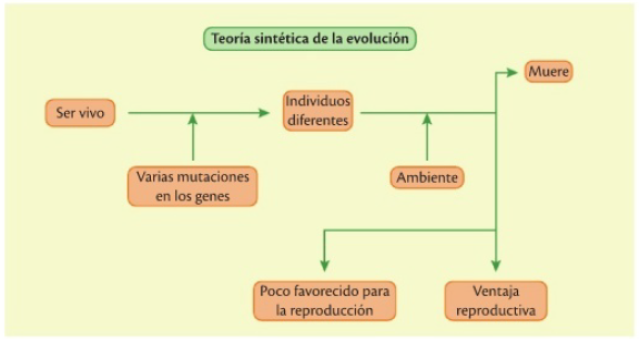 La llamada síntesis evolutiva es una teoría denominada así porque surge de la fusión de otras: la teoría de la evolución por selección natural de Darwin-Wallace, las leyes genéticas de Mendel, la sistemática (ciencia de la identificación de las especies) y el tratamiento matemático de la dinámica de poblaciones. Esta teoría también ha sido enriquecida con el aporte de la ecología, la paleontología y la biología molecular.
