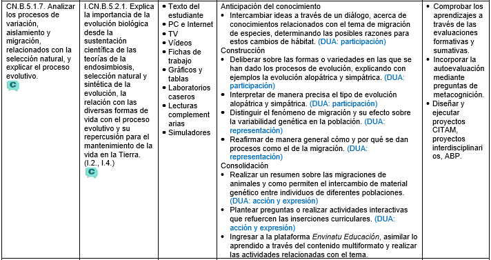 CN.B.5.1.7. Analizar los procesos de variación, aislamiento y migración, relacionados con la selección natural, y explicar el proceso evolutivo.