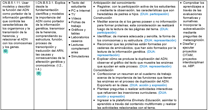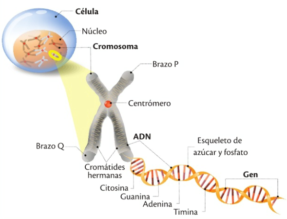 CN.B.5.1.11. Usar modelos y describir la función del ADN como portador de la información genética que controla las características de los organismos y la transmisión de la herencia, y relacionar el ADN con los cromosomas y los genes.