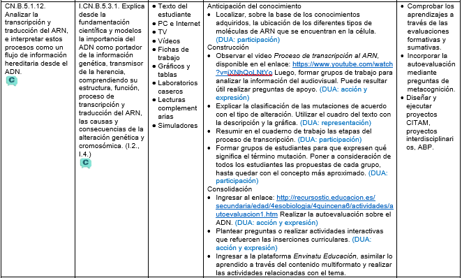 CN.B.5.1.12. Analizar la transcripción y traducción del ARN e interpretar estos procesos como un flujo de información hereditaria desde el ADN.