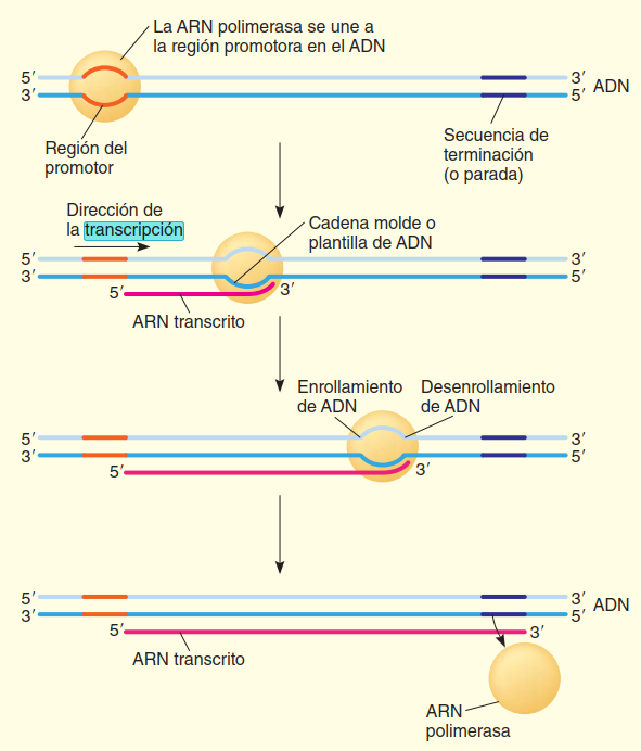 La transcripción es un proceso que también tiene tres etapas, las cuales se detallan a continuación.