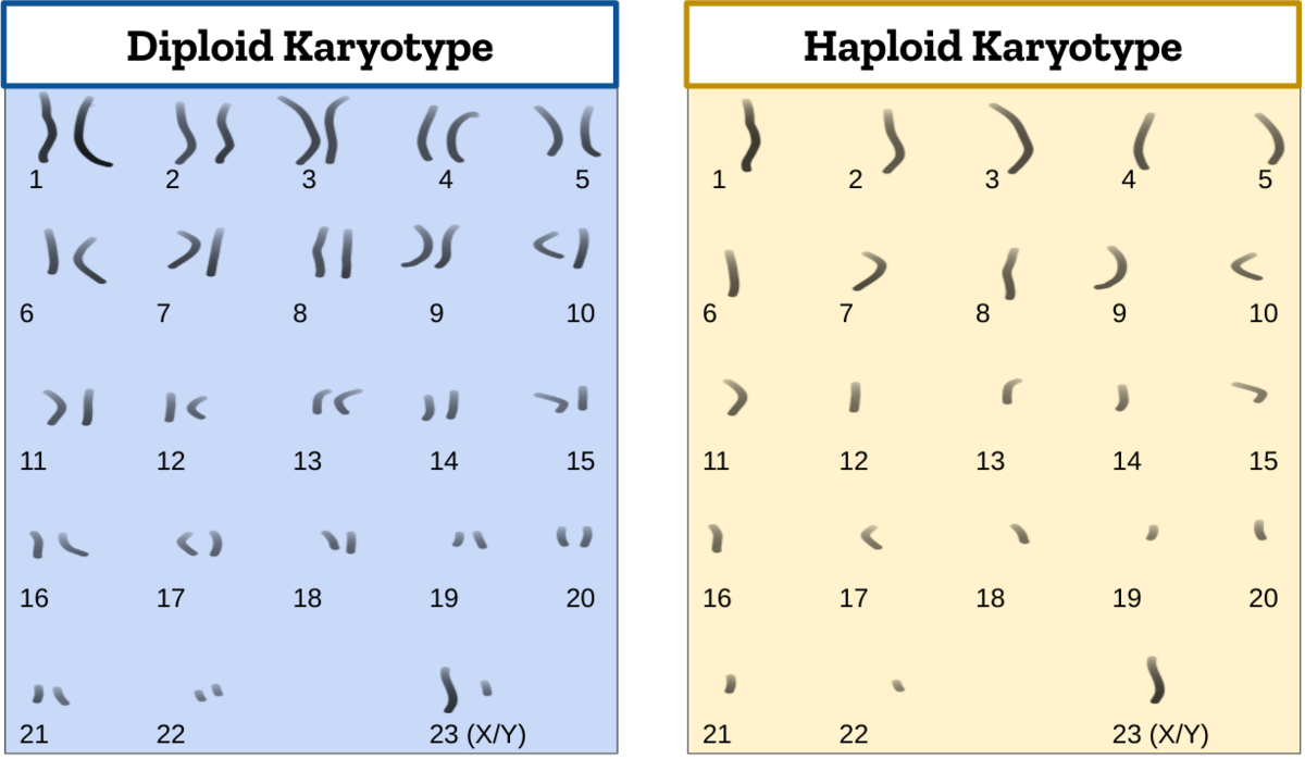 A diferencia de las células somáticas, los gametos tienen contenido haploide, es decir que tienen un solo cromosoma de cada tipo (en total veintitrés, para la especie humana). Esto sucede porque al juntarse los gametos de padre y madre, el número cromosómico de la especie se restablece (con la ventaja adicional de que se mezclan genes de diferentes individuos).