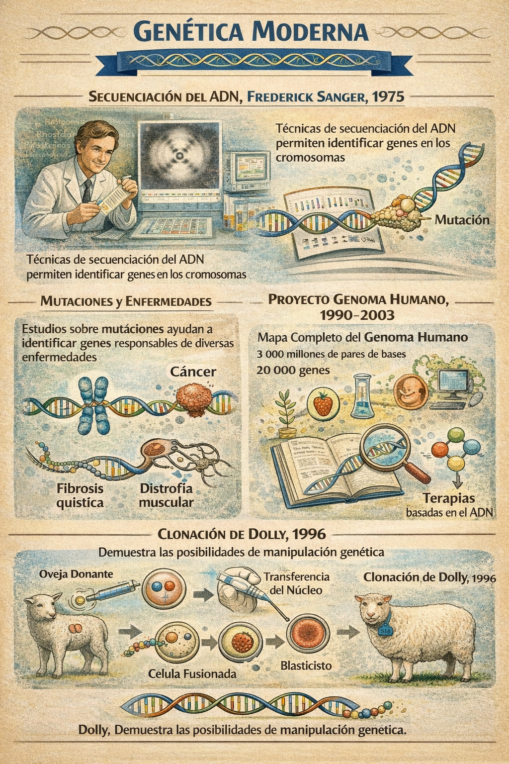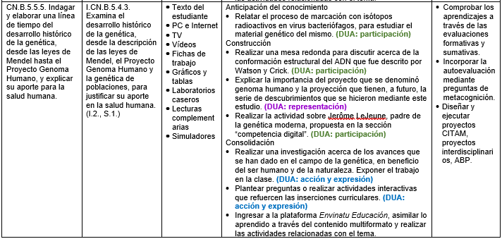 CN.B.5.5.5. Indagar y elaborar una línea de tiempo del desarrollo histórico de la genética, desde las leyes de Mendel hasta el Proyecto Genoma Humano, y explicar su aporte para la salud humana.