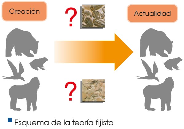 Según la teoría fijista, todas las especies tienen su origen en la Creación bíblica y se han mantenido tal y como fueron creadas hasta la actualidad. La teoría fijista fue aceptada durante muchos años como válida. La teoría fijista no podía explicar, entre otras cosas, la existencia de fósiles de muchas especies diferentes a las especies actuales.