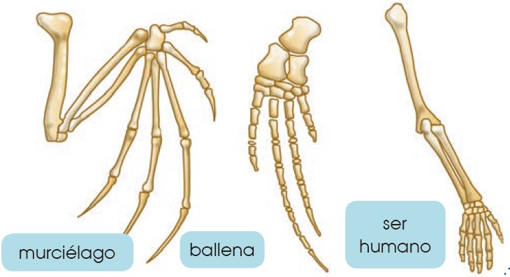 - Órganos homólogos: Son órganos de especies diferentes que presentan la misma estructura pese a ser utilizados para funciones distintas. Esto significa que comparten un antepasado común del cual heredaron la estructura del órgano. Son órganos homólogos las extremidades anteriores del murciélago, la ballena, el ser humano.
