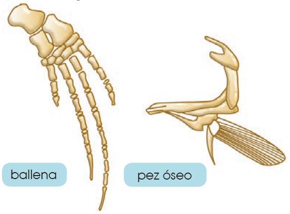 - Órganos análogos: Son órganos de especies diferentes que tienen distinta estructura, pero una forma similar, ya que son utilizados para la misma función. Los órganos análogos son una prueba de la adaptación del grupo de especies al medio donde viven. Las aletas de una ballena y un pez óseo son órganos análogos.