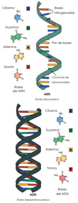 La información del ADN está codificada en la secuencia de sus bases nitrogenadas. Esta información fluye y se transmite en dos sentidos diferentes: