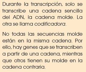 La transcripción es el proceso por el que se sintetizan moléculas de ARN complementarias a una de las dos cadenas de una doble hélice de ADN.
