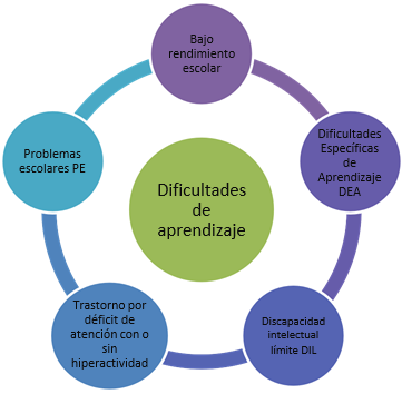 Llamadas también Dificultades Específicas del Aprendizaje (DEA), término que se utiliza para hacer referencia a “una determinada dificultad dentro de un área de aprendizaje en un niño que rinde satisfactoriamente en otras áreas (Worthington, 2003). Estos problemas se repiten en las familias con antecedentes de dificultades de aprendizaje y en todos los contextos económicos.