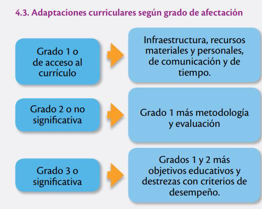 Grado 3 o significativa: Grados 1 y 2 más objetivos educativos y destrezas con criterios de desempeño.