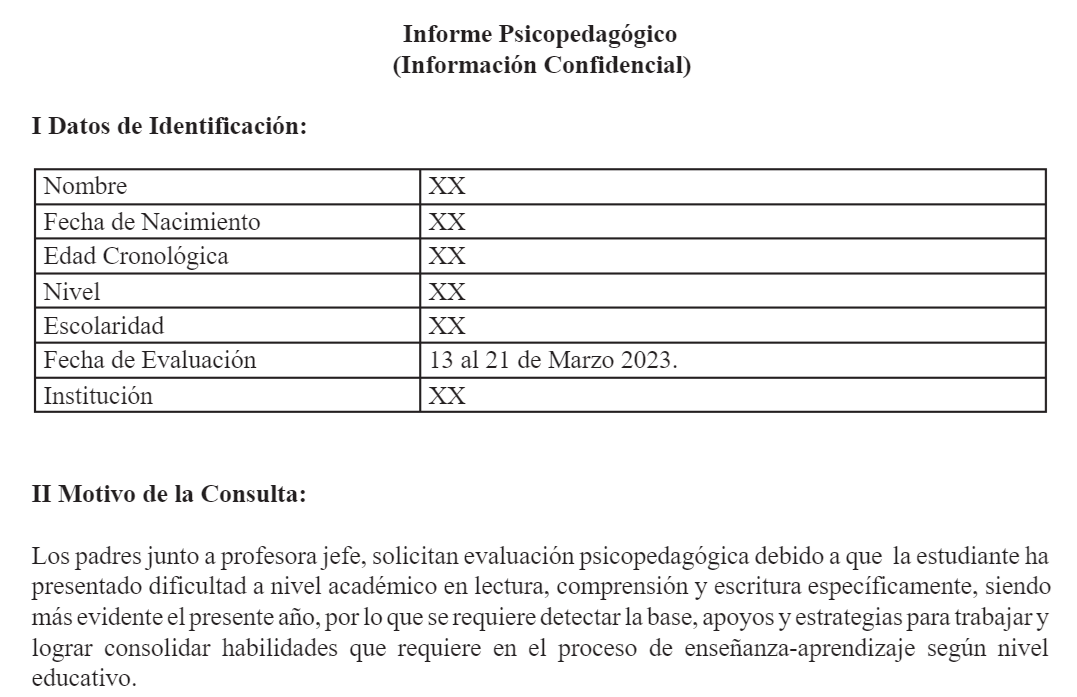 8.1.2 Ejemplos de informes Psicopedagógicos