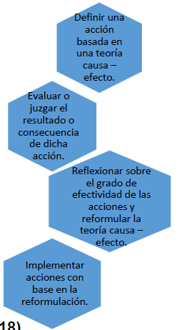 Se define como la generación de una teoría de acción a partir de la propia experiencia, continuamente modificada para mejorar su eficacia. Este proceso de aprendizaje requiere: