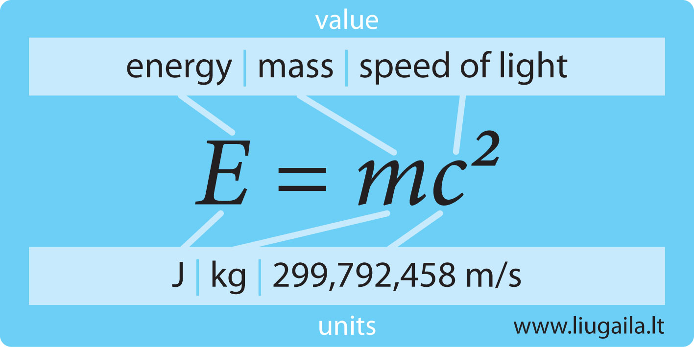 La teoría de la relatividad de Einstein manifestaba que la materia era una forma concentrada de energía que se puede calcular mediante la fórmula: