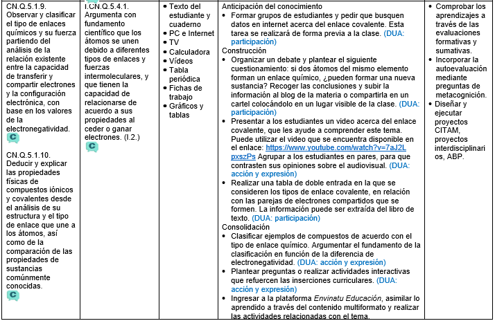 CN.Q.5.1.10. Deducir y explicar las propiedades físicas de compuestos iónicos y covalentes desde el análisis de su estructura y el tipo de enlace que une a los átomos, así como de la comparación de las propiedades de sustancias comúnmente conocidas.