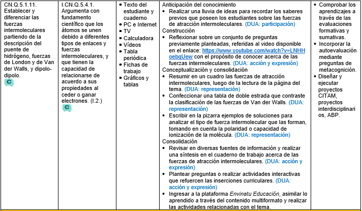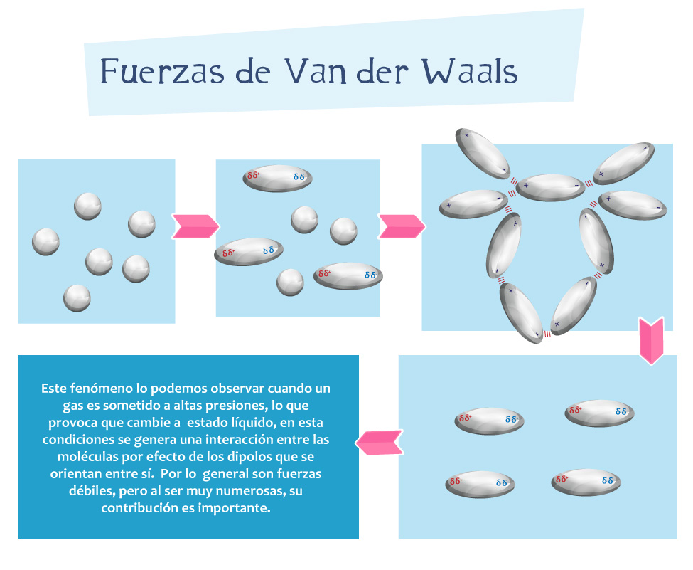 CN.Q.5.1.11. Establecer y diferenciar las fuerzas intermoleculares partiendo de la descripción del puente de hidrógeno, fuerzas de London y de Van der Walls, y dipolo-dipolo